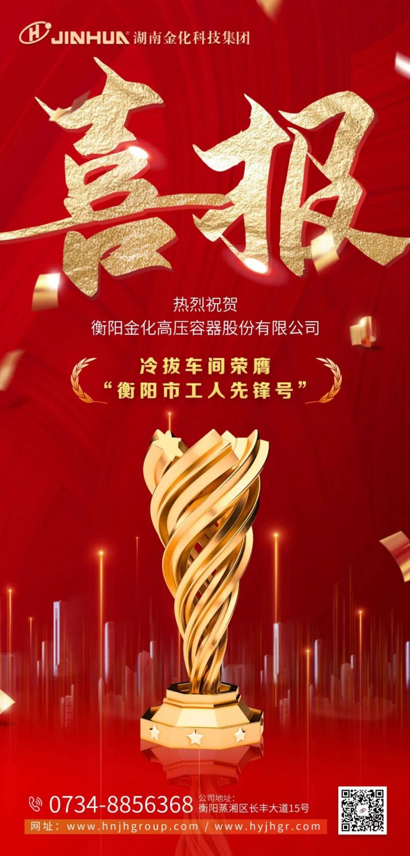 喜報|熱烈祝賀衡陽金化高壓容器股份有限公司冷拔車間榮膺“衡陽市工人先鋒號”